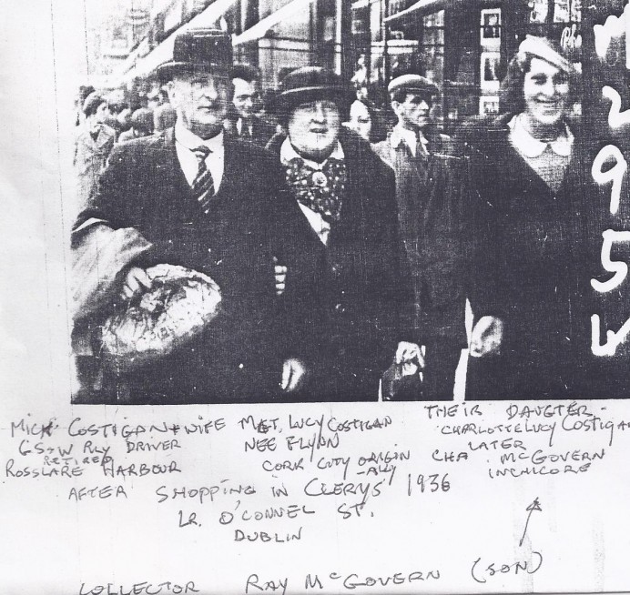 “This shows my grandparents and my mother shopping in clerys just before her wedding in february 1936.