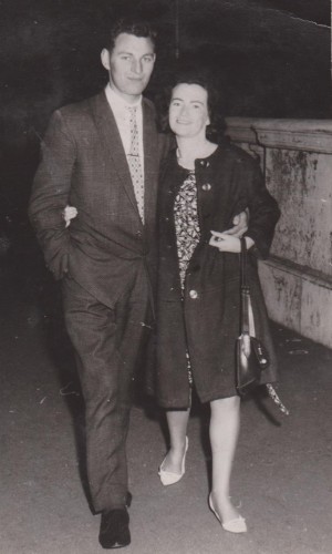 “My sister Dolores Lyons from Cabra West and Future husband Larry O’Byrne from Rialto north side and south side on the bridge captured by Arthur Fields.”