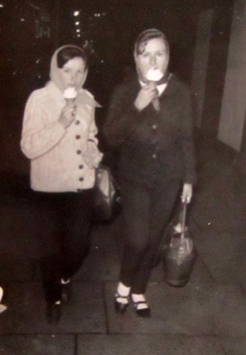 “My future wife Mary Martin from Cabra West and future sister in law Joan Carter from Finglas after a swim in Tara Street Baths.”
